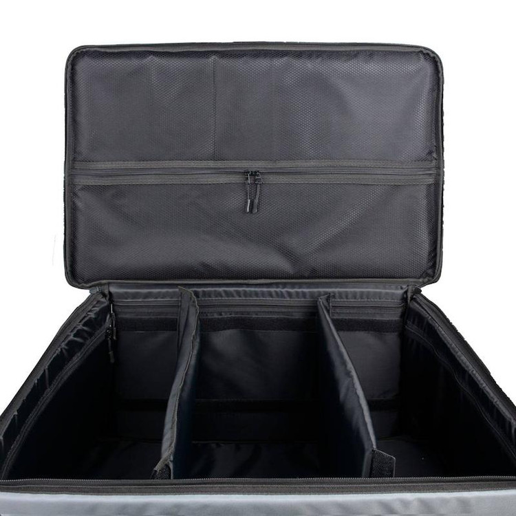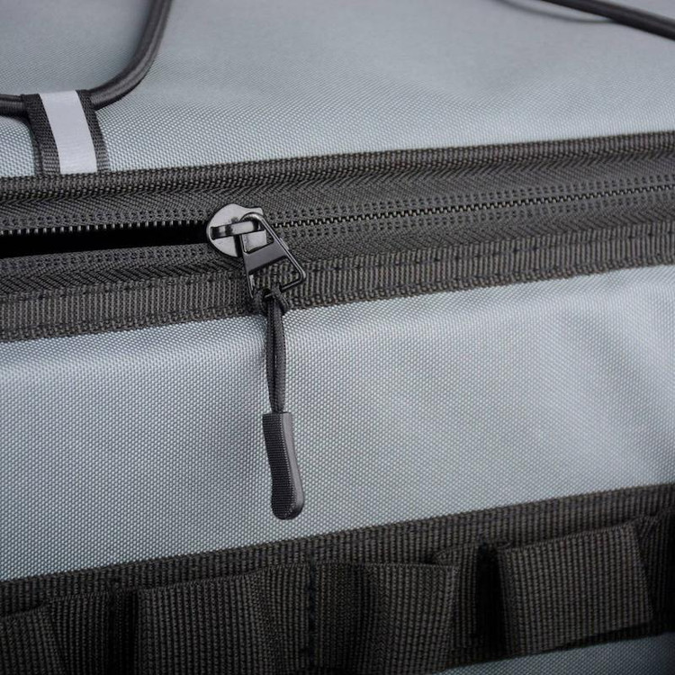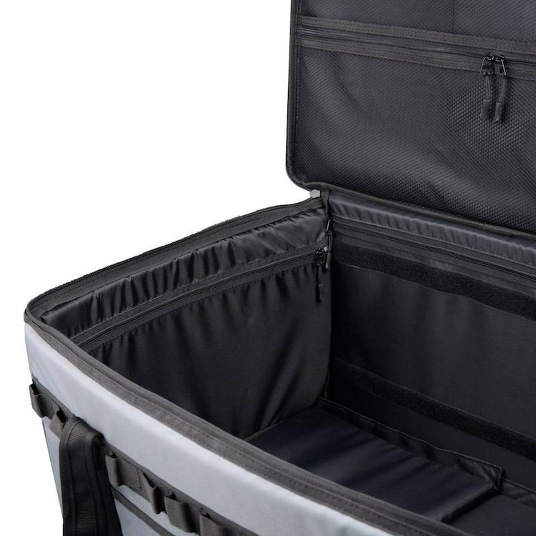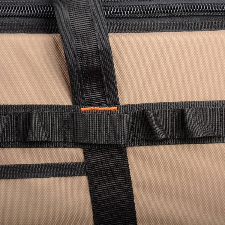 هم چنین در 4 طرف این کیف دستگیره هایی وجود دارد که حمل دو نفره را برای شما آسان می کند. در قسمت بیرونی کیف (روی درب) بندهایی تعبیه شده که می توانید لوازم سبک مورد نیازتان روی آن ببندید. دو جیب توری روی بدنه ی اصلی قراردارد که برای لوازم مورد نیازتان طراحی شده است. در داخل این کیف سه عدد دیوایدر یا پارتیشن وجود داردکه فضای داخلی را برای شما سازماندهی میکند، از دیگر ویزگی های این پارتیشن ها متحرک بودن آن هاست که به شما این امکان را میدهد تا بهترین استفاده را از فضای این کیف ببرید.