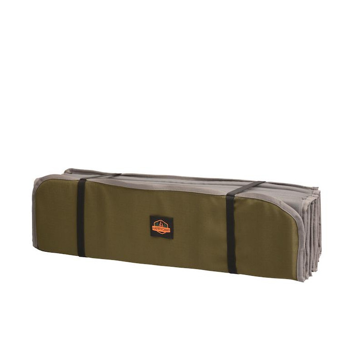 زیرانداز کیسه خواب آکاردئونی هپی کمپ ، یک زیرانداز بسیار مناسب برای استفاده در زیر کیسه خواب در فضای باز است. این محصول ساخته شده از ترکیب فوم پلی اتیلن کراس لینک و پارچه ریپ استاپ pu2000 ساخته شده و جنس کف آن در برابر عوامل بیرونی مقاوم می باشد. لازم به ذکر است که در صورت برخورد سطحی اجسام به هیچ مشکلی نمیخورید اما در صورت برخورد اجسام تیز احتمال پارگی دارد که به دلیل ریپ استاپ بودن پارچه این پارگی بیشتر نمی شود. همچنین این محصول دارای کش جهت جمع نگهداشتن این زیرانداز می باشد که با وجود آن، حمل زیرانداز برایتان بسیار راحت تر خواهد شد.