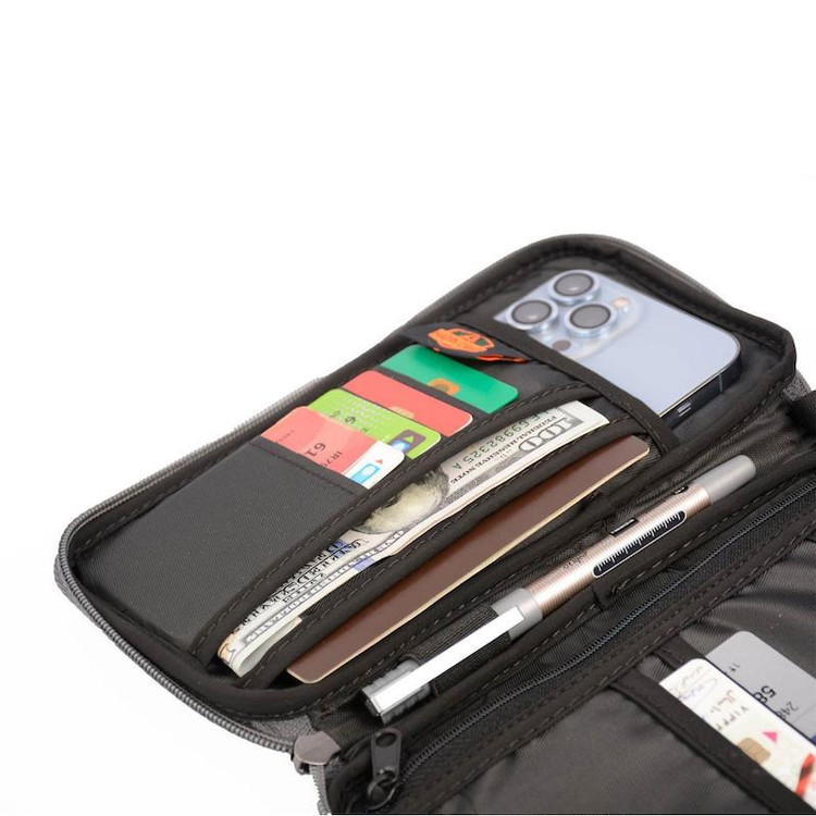 کیف پاسپورت هپی کمپ هم برای سفر و هم برای استفاده روزمره عالی است. شما به راحتی می توانید گذرنامه، تلفن همراه و سایر چیزهای کوچک ضروری خود را در این کیف پاسپورت قرار دهید. کیف HAPPY CAMP از پارچه ملانژ با طرح کتان لایه های اسفنجی ضد ضربه ساخته شده است، اتصالات با کیفیت بالا دوام آن را تضمین می کند. در داخل کیف فضا های زیادی برای کارت های متفاوت در اندازه های مختلف و جیب برای اسناد و تلفن همراه دار وجود دارد. یک جیب کوچک در بیرون کیف وجود دارد تا بتوان به راحت ی تلفن همراه را داخل آن قرار داد. کیف پاسپورت و مدارک هپی کمپ از مقاومت کافی در جنس پارچه و دوخت برای نگهداری از مدارک شخصی شما برخوردار است. موارد ضروری دسترسی داشت. بند گردنی کیف که قابلیت جداسازی دارد، به حمل راحت تر کیف کمک می کند.