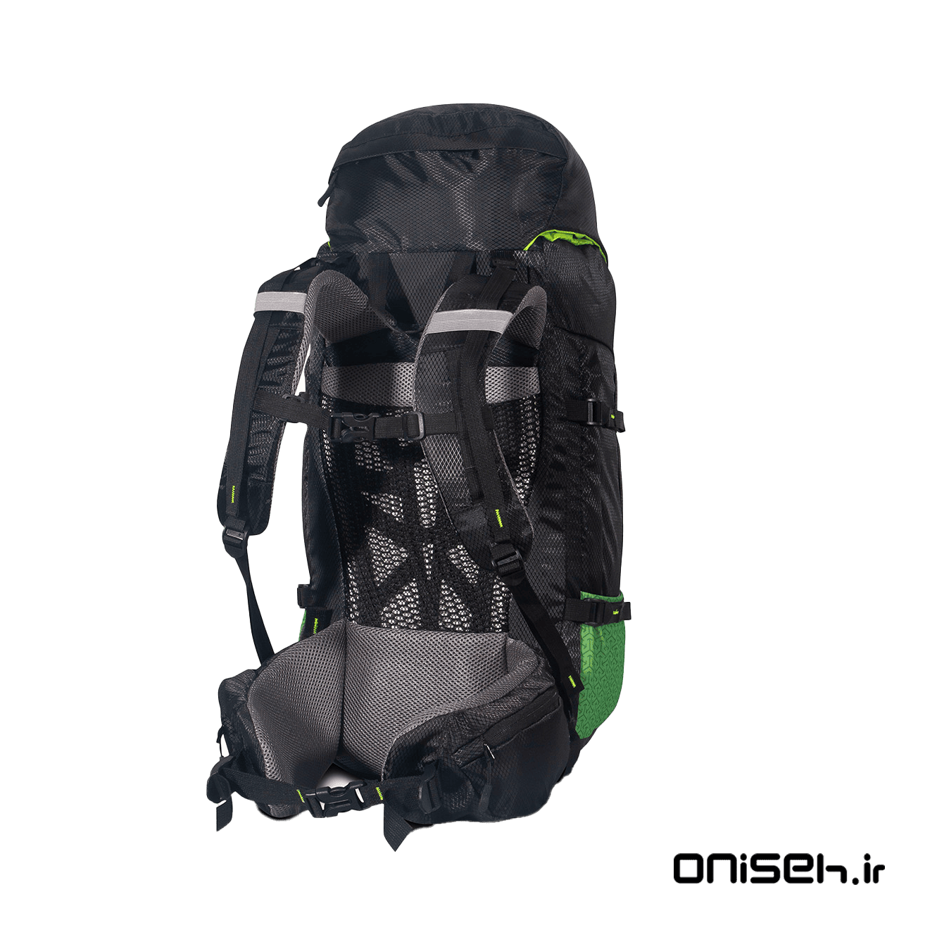 پشت کوله با انحنای ستون فقرات تنظیم شده و بندهای شانه، سینه و کمربند بهصورت ارگونومیک طراحی شدهاند تا وزن بار بهدرستی روی لگن و بدن توزیع شود. بندها همگی پددار، سبک و قابل تنظیم هستند.