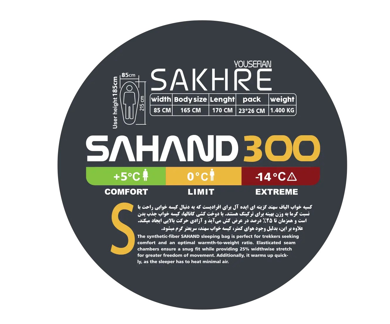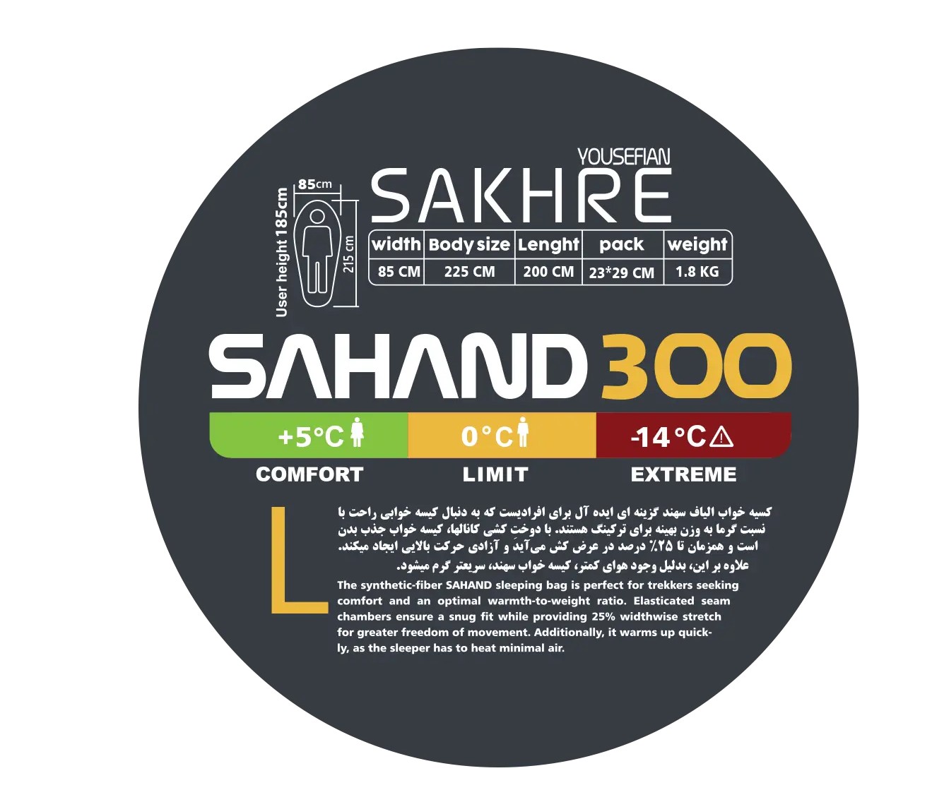 مشخصات فنی کیسه خواب سهند 300