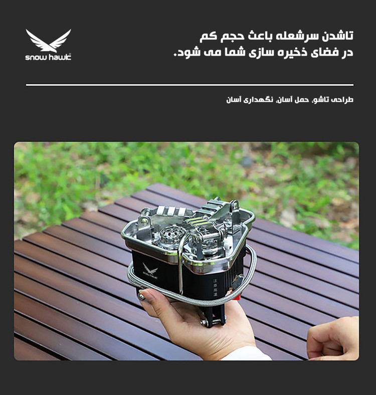 پایه های تاشویی که این سرشعله کوهنوردی دارد، به شما اجازه می دهند تا در فضای محدود، این دستگاه را ذخیره کنید. همچنین، دارای یک شلنگ مقاوم در برابر حرارت است که از آسیب به دستگاه جلوگیری می کند.