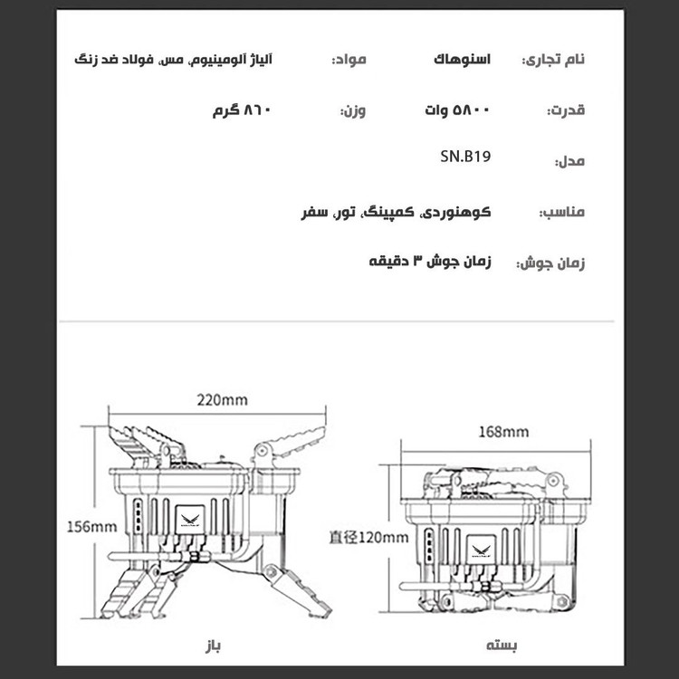 - ابعاد حالت بازشده: 22×15 سانتی متر (ارتفاع / قطر)