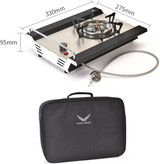 این اجاق همراه با کیف برزنتی برای حمل آسان و محافظت از آن در زمان حمل و نقل است. ابعاد این اجاق 330*275*85 سانتی متر است که آن را مناسب برای استفاده در محیط های کم جا و قابل حمل می سازد.