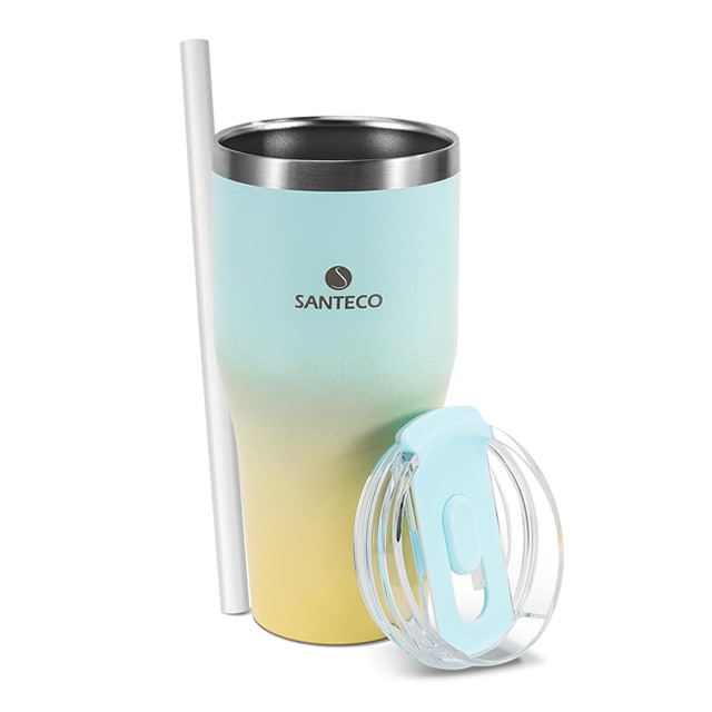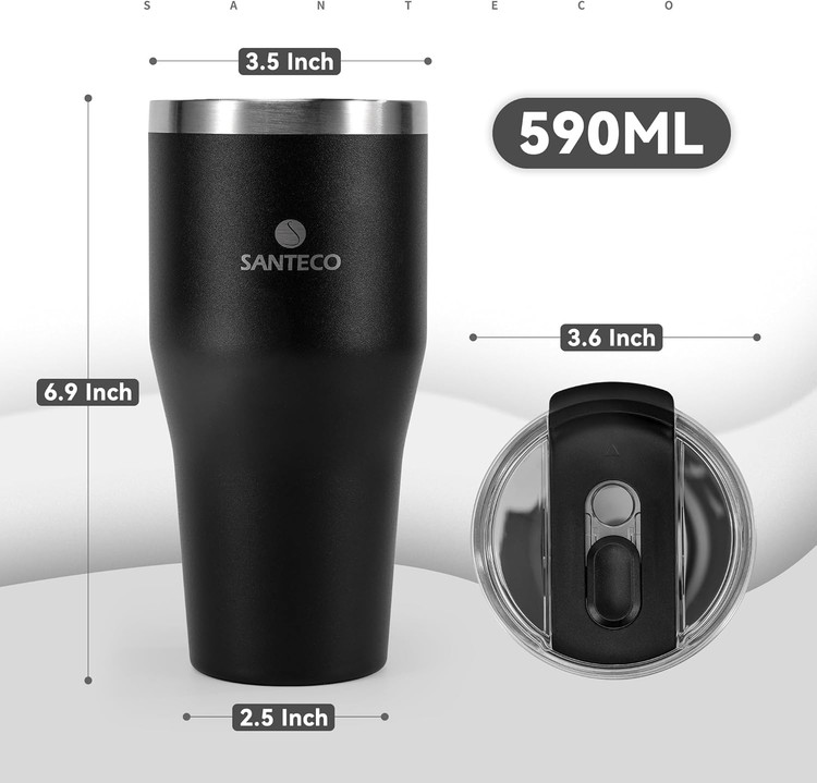 درب این ماگ Santco از جنس تریتان و سیلیکون ساخته شده که نه تنها ضد نشت است، بلکه هنگام جابه جایی از چکه کردن محتویات جلوگیری می کند. طراحی ارگونومیک و وزن سبک ۳۷۰ گرمی آن، حمل و نقل روزانه را بسیار آسان کرده و بدون ایجاد تعریق روی بدنه، همیشه خشک و خوش دست باقی می ماند. با ابعاد جمع و جور و استاندارد (۸.۸۹ × ۶.۳۵ × ۱۷.۵۳ سانتیمتر)، این ماگ به راحتی در جا لیوانی خودرو قرار می گیرد و برای استفاده در کمپینگ، کوهنوردی، باشگاه، سفر یا حتی محیط کار و خانه، یک گزینهی همه کاره و مطمئن به شمار می رود.
