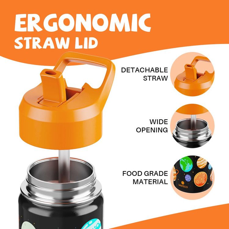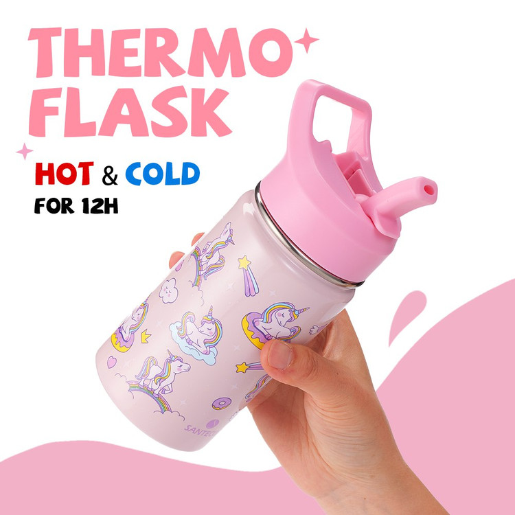 با قابلیت حفظ دمای نوشیدنی تا ۱۲ ساعت برای مایعات گرم و تا ۲۴ ساعت برای نوشیدنی های سرد، این فلاسک SANTECO تضمین می کند که نوشیدنی مورد علاقه فرزندتان همیشه در دمای دلخواه باقی بماند. دهانهی عریض آن، امکان افزودن تکه های یخ و شست و شوی آسان را فراهم می کند. همچنین، درب نیدار این محصول بهراحتی جدا شده و شست و شوی کامل آن نیز بدون دردسر انجام می شود.