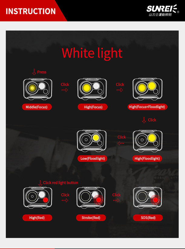 ▪️منبع نور: 1 عدد چراغ LED مارک Cree (ساخت آمریکا) + 1 عدد چراغ LED سفید + 1 عدد چراغ LED قرمز