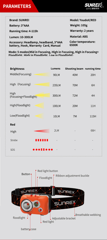 چراغ پیشانی سانری مدل youdo X
