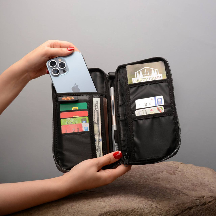 کیف پاسپورت هپی کمپ ، با قابلیت قراردادن کارت های بانکی، پاسپورت ، شناسنامه، تلفن همراه، اسکناس و ... یک محصول کاربردی در سفر میباشد.