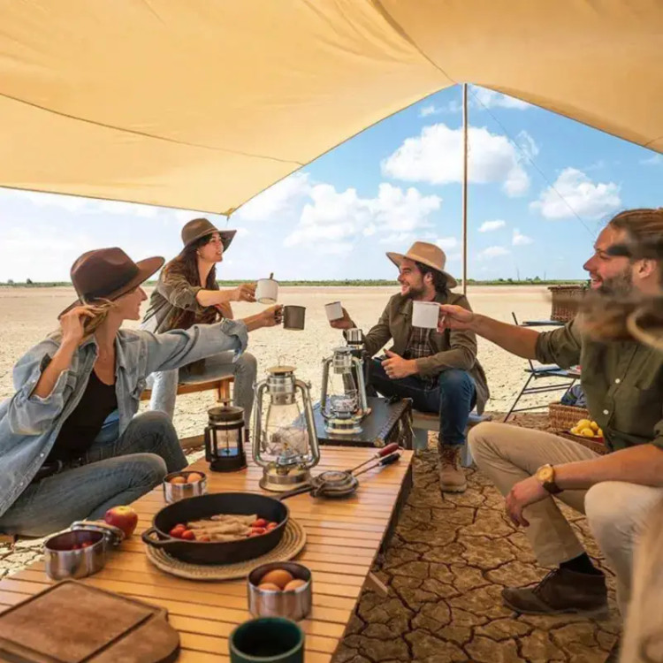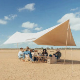این سایبان در رنگ خاکی و با طراحی ساده و شیک عرضه میشود؛ رنگی که بهخوبی با محیط طبیعی هماهنگ شده و ظاهری حرفهای و کاربردی به تجهیزات کمپینگ میبخشد. طراحی تمیز و کمزرقوبرق باعث میشود محصول در هر محیطی – از جنگل تا ساحل – جلوهای مناسب داشتهباشد بدون آنکه جلب توجه غیرضروری کند.