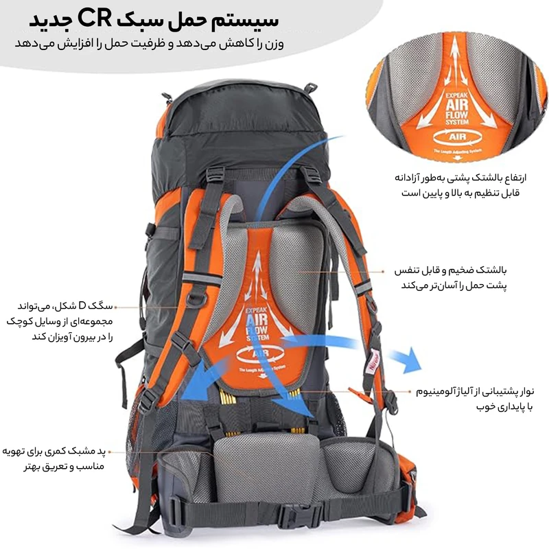 - ابعاد کوله: 75L×33W×28D سانتی متر