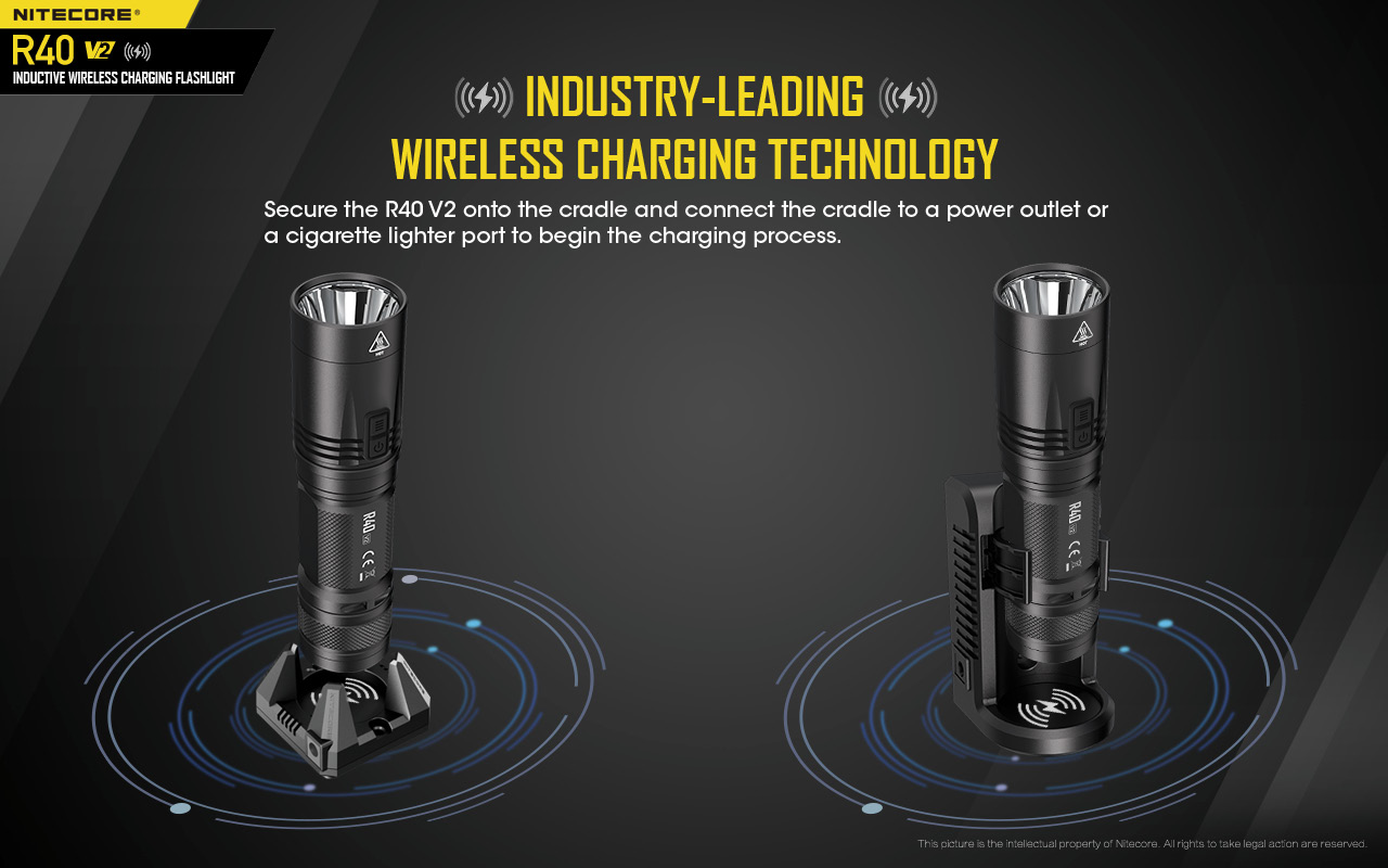 یکی از ویژگی های جالب این محصول کمپانی نایتکر شارژ به چندین روش مختلف است که در کمتر محصولی این تعداد روش شارژ دیده می شود. یک روش استفاده از پایه رومیزی بی سیم است که چراغ قوه را کافیست بر روی پایه قرار دهید تا عملیات شارژ شروع شود سیم پیچ های القایی در درون پایه شارژ و درب چراغ قوه امکان شارژ بیسیم بواسطه میدان مغناطیسی را می دهد.. این پایه بی سیم به دو روش فعال می شود با استفاده از آداپتور و شارژ فندکی ماشین که به همراه بسته بندی کمپانی نایتکر ارائه شده است یکی از ویژگی های خیلی خوب در این محصول که خیلی از افراد به دنبال آن هستند شارژ با شارژر فندکی ماشین است.