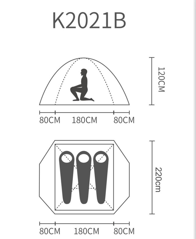 چادر سه نفره K-2021B، دو پوش، ضدآب و با استراکچر گنبدی شکل است. رویه چادر از جنس پلیاستر ریپ استاپ 210T با روکش پلیاورتان و ضدآب (5000 میلی متر) و پوش داخلی از جنس پلیاستر ریپ استاپ 170T و تنفسی می باشد. کف چادر نیز از جنس پلی استر آکسفورد 150D با روکش پلیاورتان و ضدآب (5000 میلی متر) است. پنجرهها توری بوده و تمام درزهای رویه و کف چادر، آب بندی شدهاند.