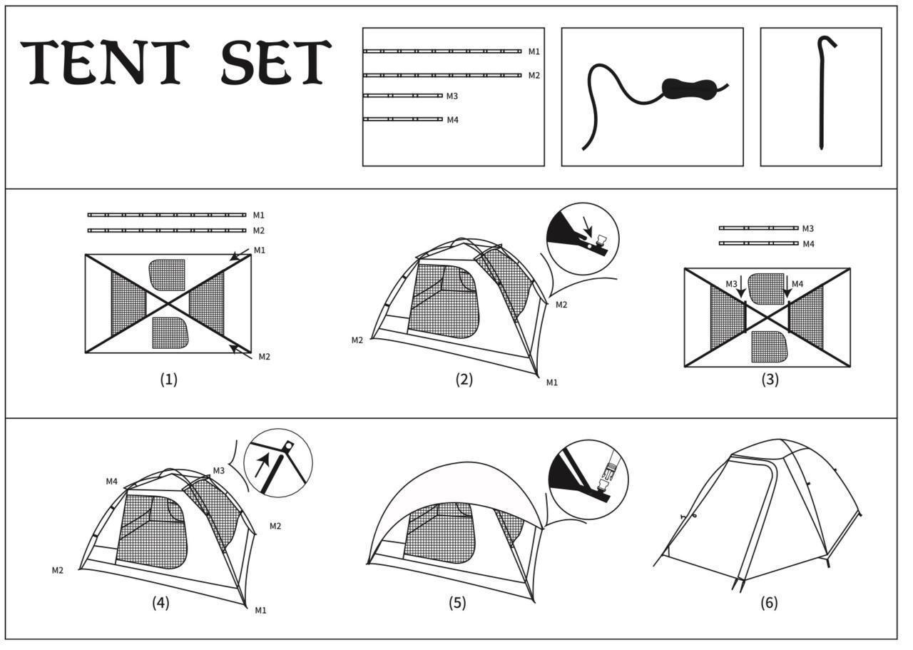 چهار تیرک چادر کله گاوی از جنس آلومینیوم با ضخامت 8.5 میلی متر می باشد. این تیرکها بسیار مقاوم بوده و در باد شدید تغییر شکل نمیدهند. پوش داخلی به صورت کلیپسی به تیرکها متصل شده و چادر برپا میگردد. سپس پوش خارجی بر روی آنها قرار گرفته و با کمک اتصالات تعبیه شده در پوش، به آنها متصل میگردد. میخ های چادر نیز از جنس آلومینیوم می باشند.