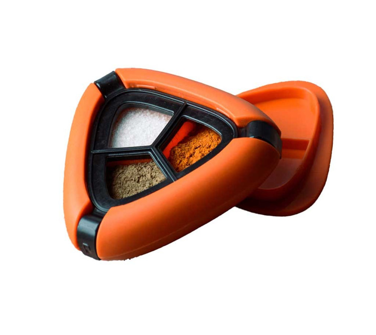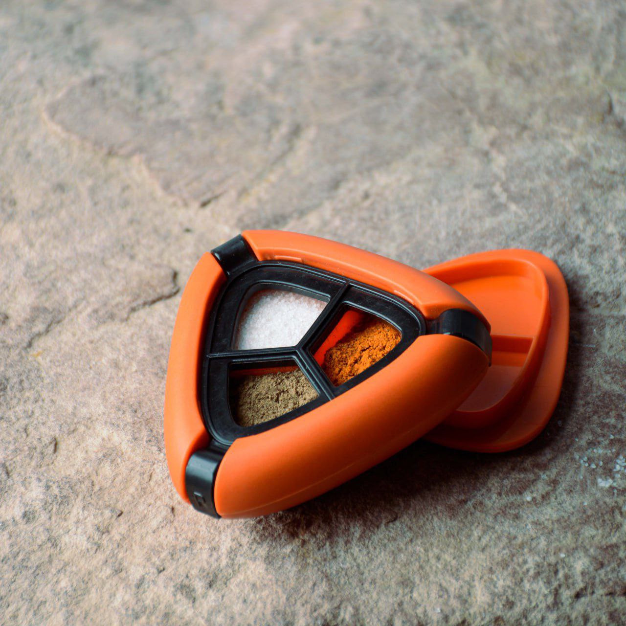 ادویه پاش لایف کمپ دارای 3 محفظه مجزا که کاملا ضد رطوبت بوده حمل ادویه های مورد نیاز شما را بسیار آسان میکند. مهمترین ویژگی این وسیله کارایی زیاد با اندازهی بسیار کوچک است. طول و عرض 6 و ضخامت 3 سانتیمتری این وسیله به شما این امکان را میدهد تا بتوانید آن را در کوچکترین محفظهی کوله پشتی خود قرار دهید. این وسیله دارای سه محفظه است که میتوان داخل آنها ادویجات گوناگونی مثل فلفل و نمک بهصورت جداگانه ریخت و هر کدام از محفظهها به صورت جداگانه دارای روزنهی ریزی است که از طریق آن میتوان محتویات داخلی را استفاده کرد. جنس بدنهی این ادویه پاش از پلاستیک است و مقاومت بالایی در برابر ضربه دارد. بهعلاوه کاملا آب بندی شده و در برابر نفوذ آب و رطوبت مقاوم است. واشرهای لاستیکی اطمینان می دهند که نمک ، فلفل و ادویه های شما تازه باقی بمانند و با یک دیگر ترکیب نشوند.