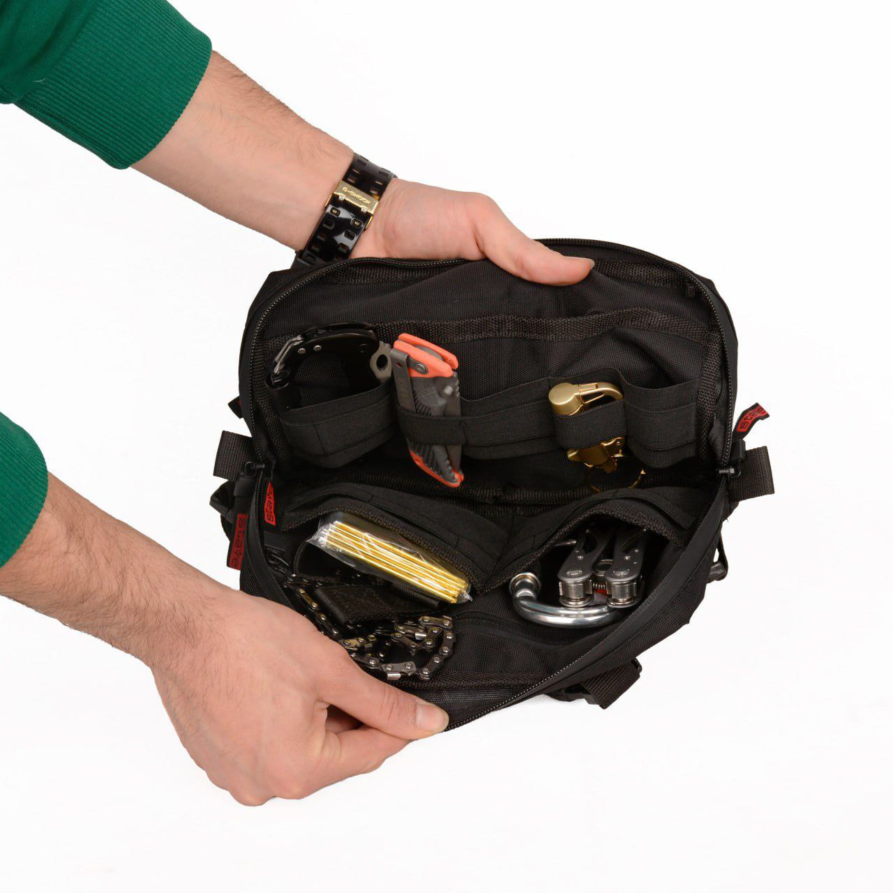 لازم به ذکر است که این محصول فقط یک کیف بوده و تجهیزات موجود در عکس، صرفا جنبه نمایشی دارد.